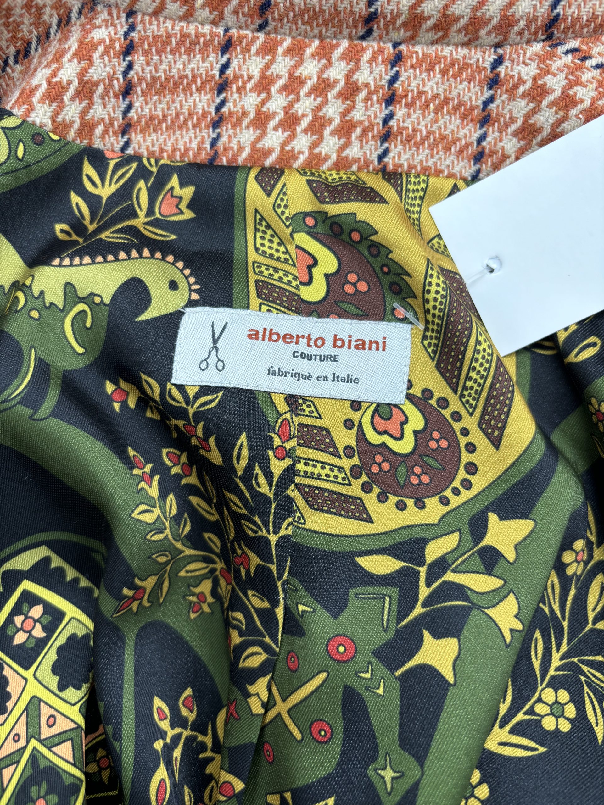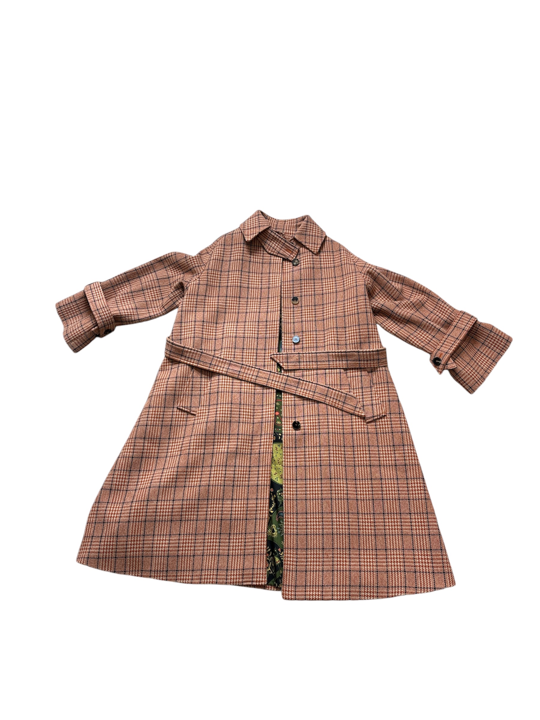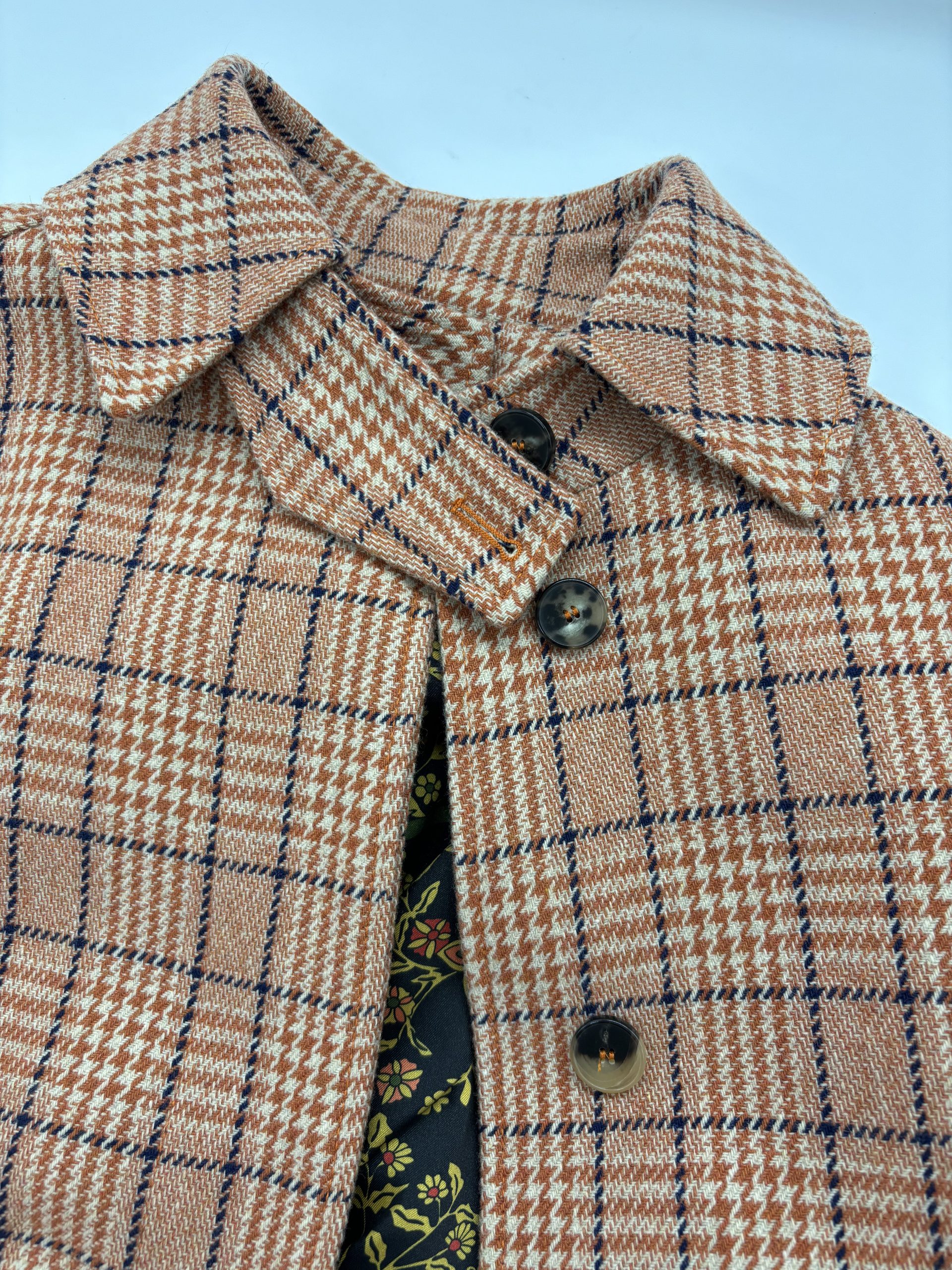 Cappotto Alberto Albani ruggine con fantasia scozzese blu.